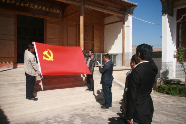 随后,在中共中央西北局盐井会议纪念馆全体组工干部佩戴党徽,面向党旗,举右拳过肩,重温入党誓词。